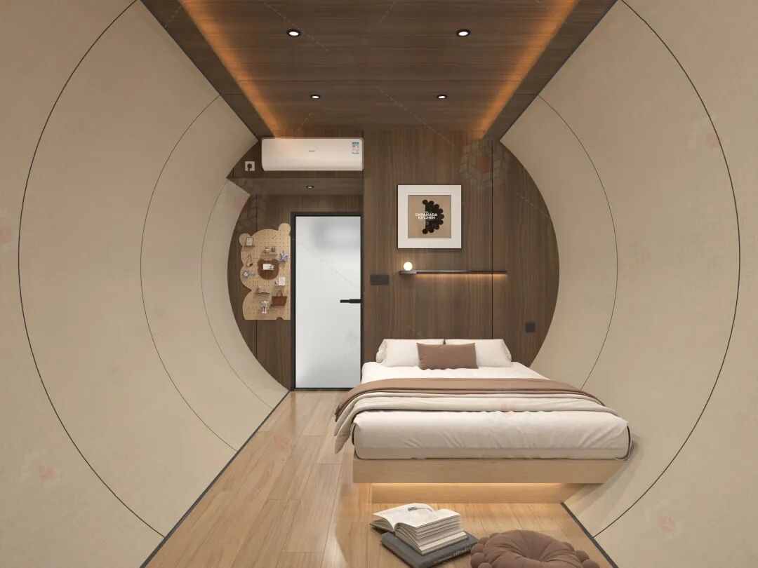 “绿野仙踪里,藏着自然的密码”,蜂巢木屋以仿生设计带你闯入森林秘境。66.5㎡的空间搭配14.62㎡露台,如同嵌入林间的巨型蜂巢,木质肌理与自然肌理无缝相融,成为“沉浸式移动生态课堂”的绝佳载体。