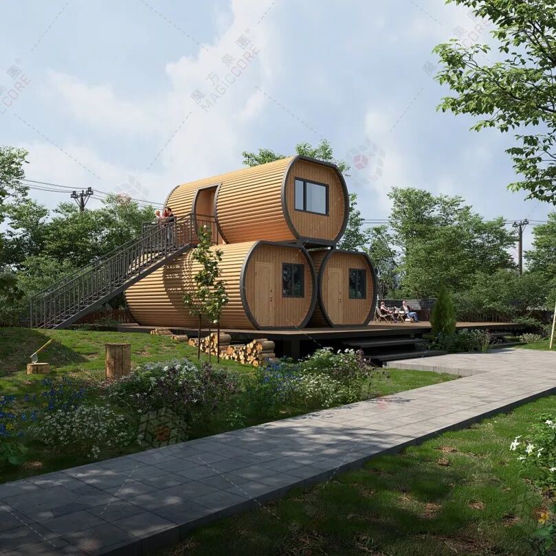 这里是家庭时光的“高定剧场”,2室1厅2卫的布局容纳亲子嬉戏、亲友小聚;更是乐高式的森林地标,模块化叠拼技术让搭建像拼积木般灵活,无论是生态农庄的研学基地,还是景区的特色住宿,都能快速落地成景,让每一次停留都成为与自然对话的修行。