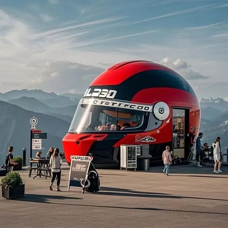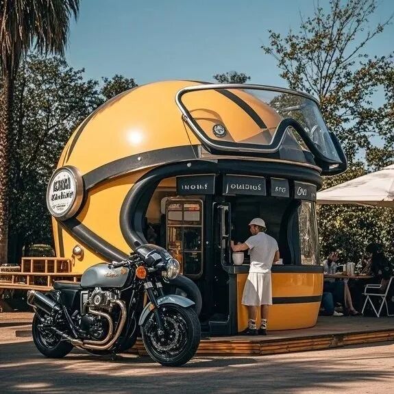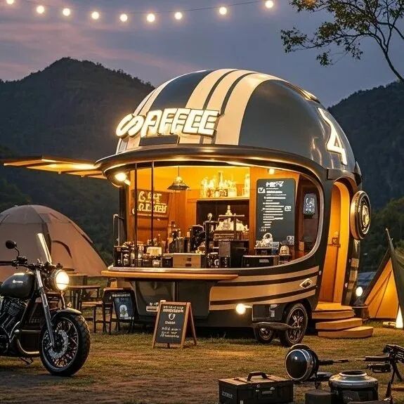 不仅是头盔,更是移动的艺术装置——摆放在咖啡馆门口化身潮流地标,甚至能成为民宿露台的点睛之笔!开放式窗口让交易更亲切,氛围亮化让深夜依旧人气爆棚,让街头商业从“将就”变“讲究”。