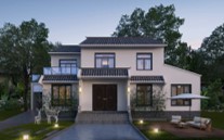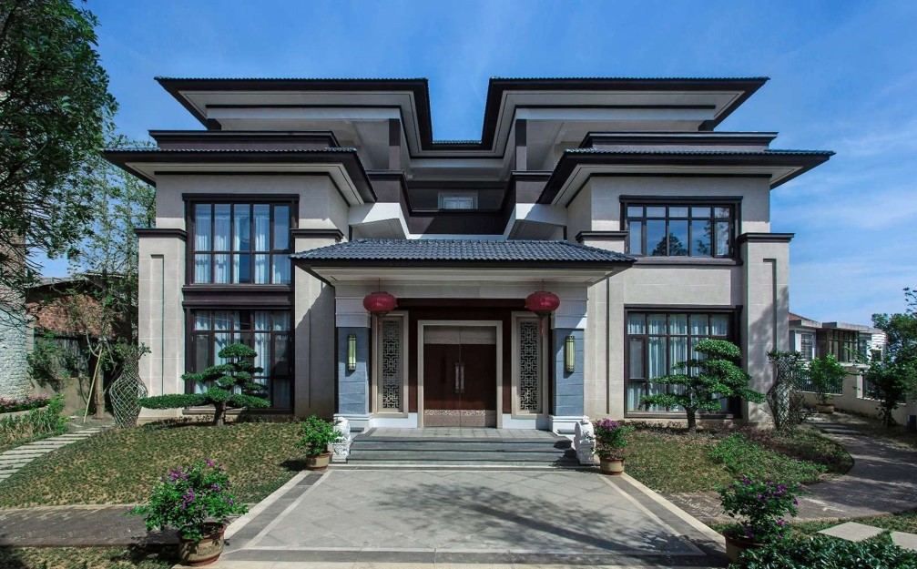 新中式别墅以浅色系为主的建筑外墙,搭配中式韵味的屋顶,相异的色调在横纵可交融,平和静谧。新中式别墅通过对空间结构与比例的细致推敲,将现代材质 与东方元素巧妙兼糅,摒弃了繁复的技巧,外观造型以简洁硬朗的线条为主,让每一处都尽显每一处角落都韵味十足,尽显国风独特之美!