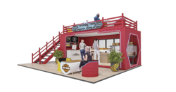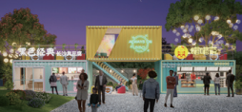 集装箱组合以集装箱为载体,覆盖各类主流潮流单品的模块化元素,配色鲜明,外观涂装简约时尚,新鲜感十足。并用移动商业的观点,突破场景可能性和美陈景观的边界,陪伴游客和 消费者发现更多有趣空间,构建出“生活在别处”的独特体验感。