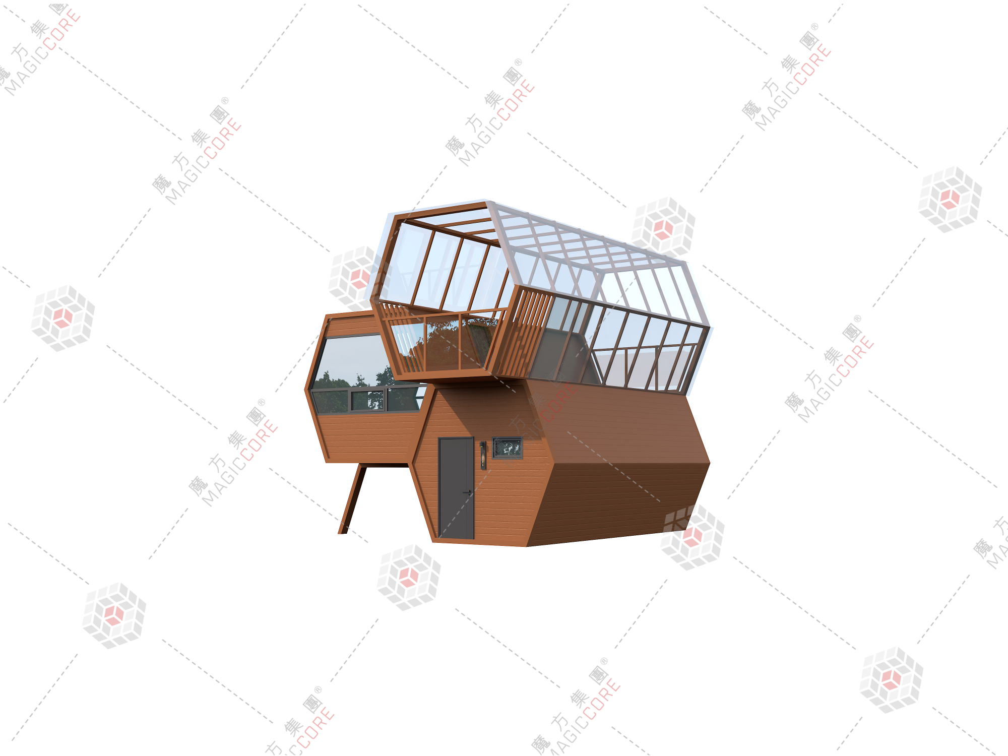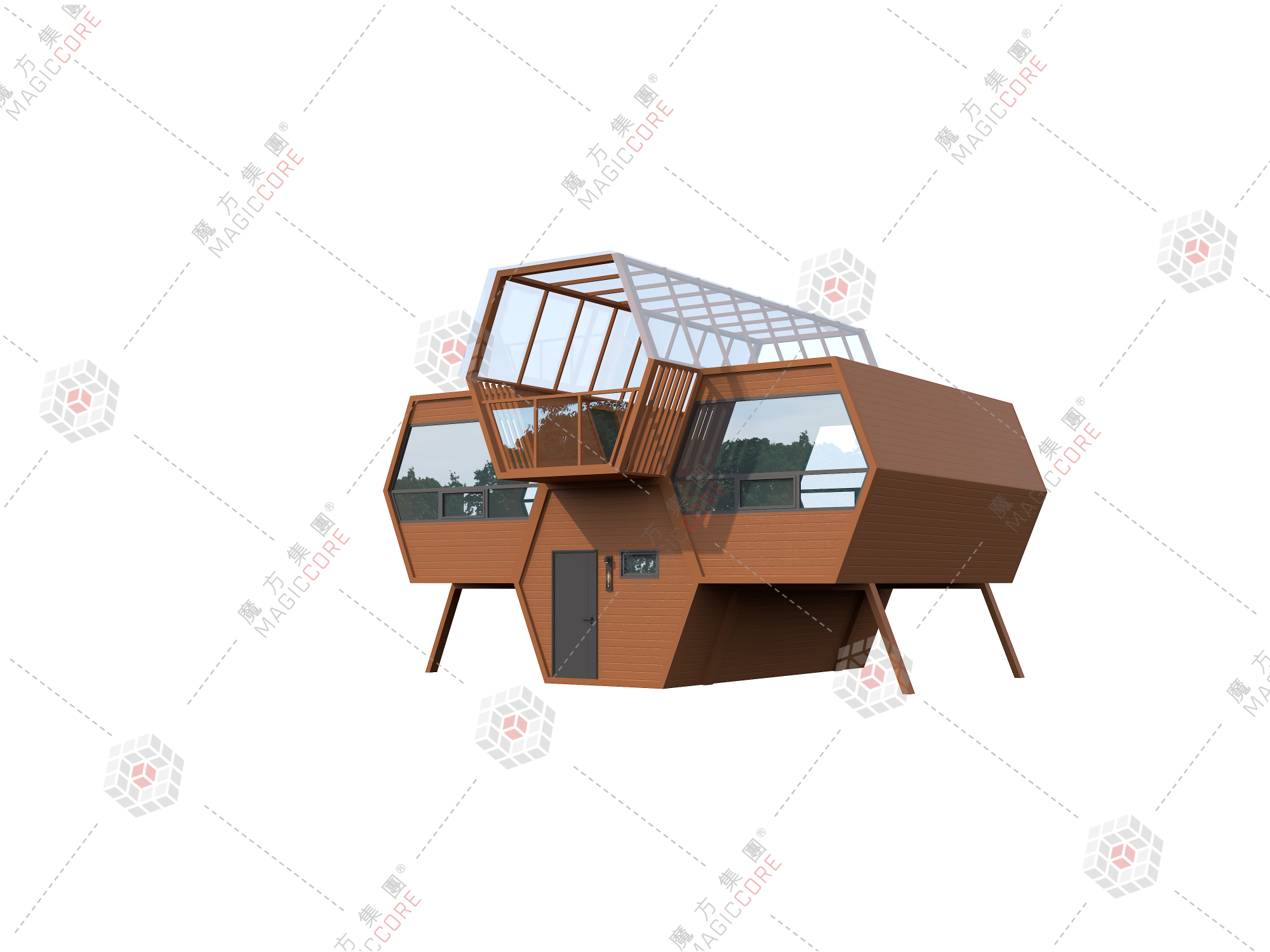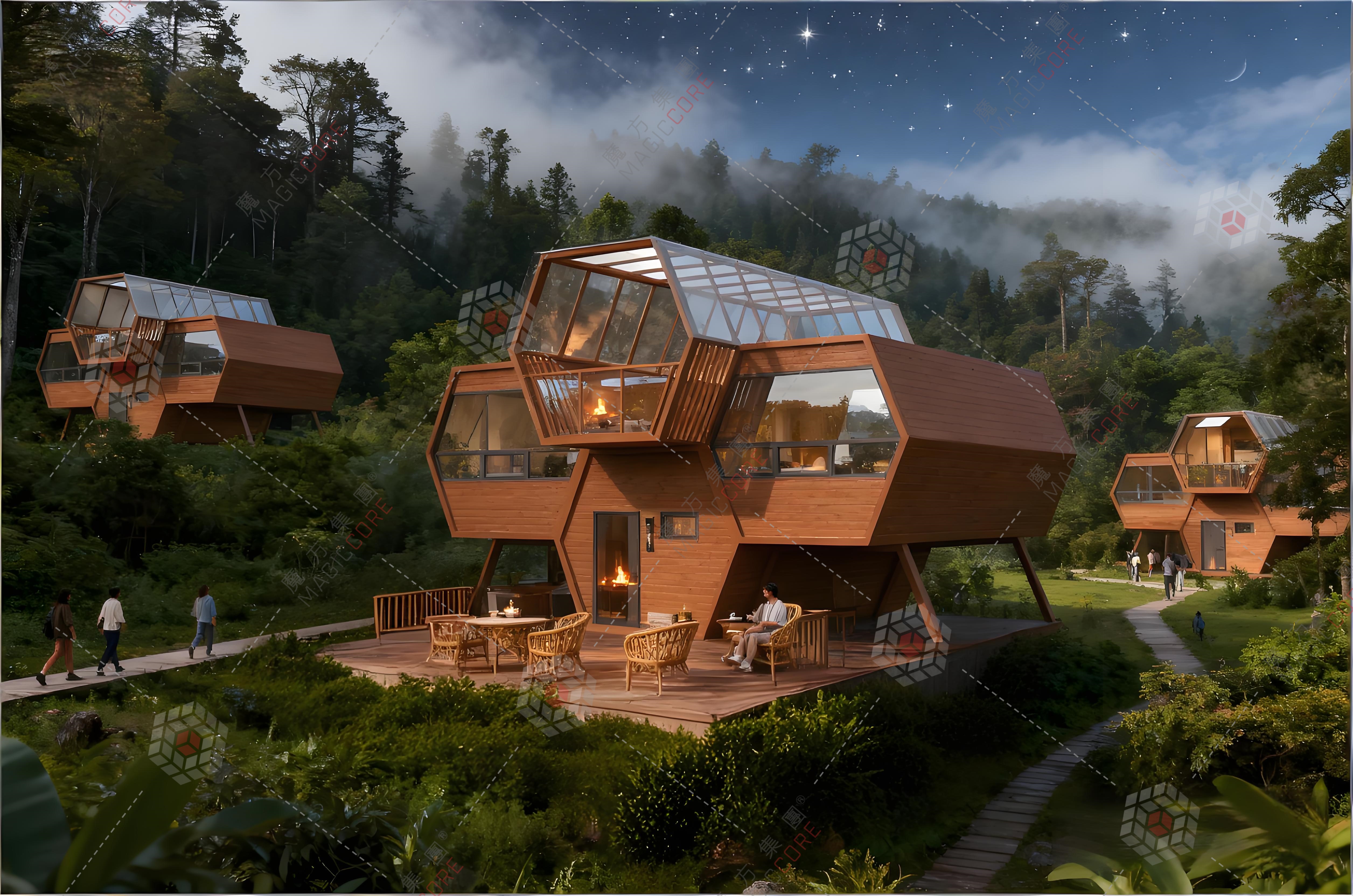 蜂巢木屋以 “探寻自然密码” 为设计灵感,六边形线条勾勒高级质感,乐高式叠拼模块化设计,适配情侣度假、家庭出行、团建活动等全业态,整装速达即运营。