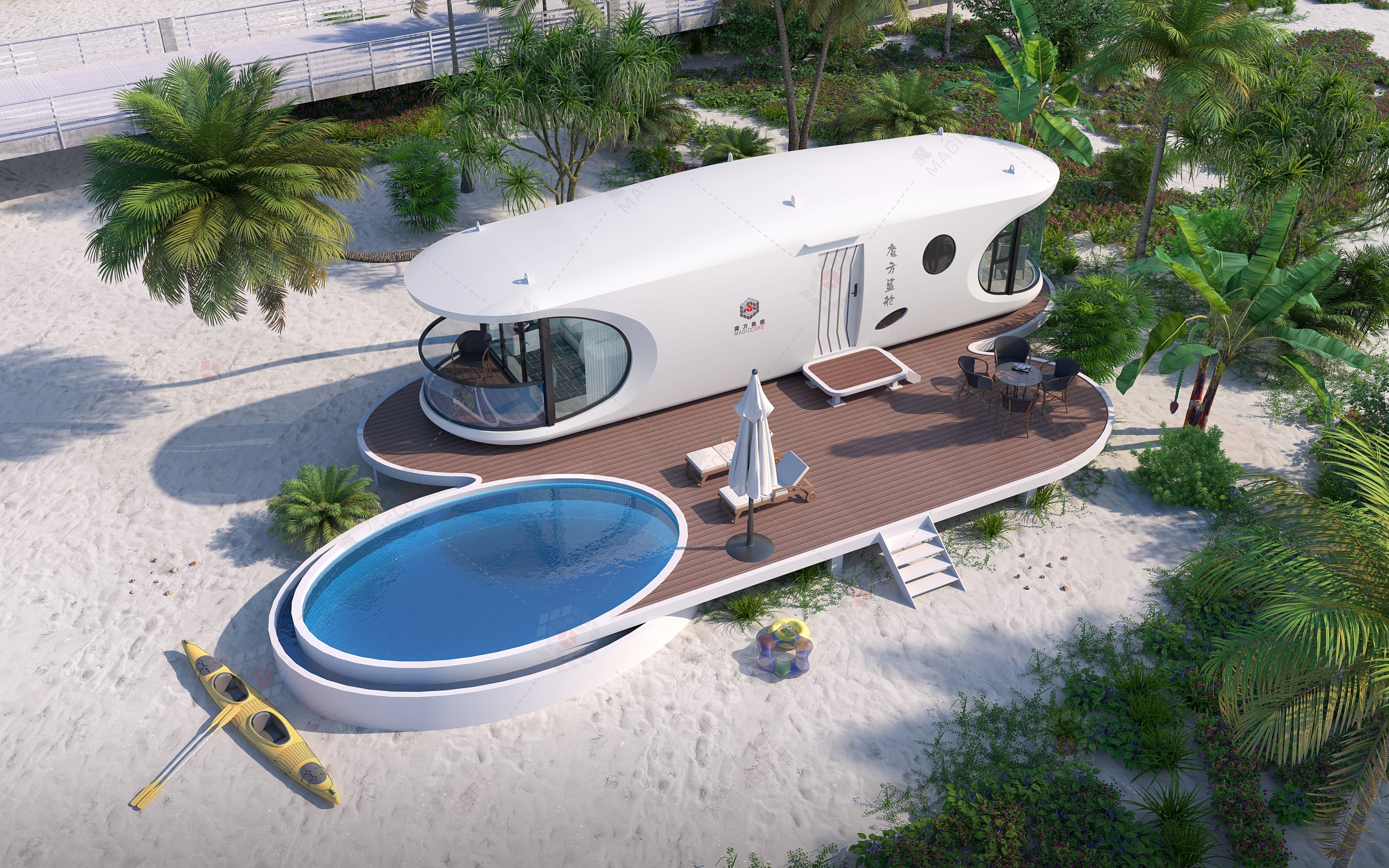 鲨鱼舱采用独特仿生设计,酷似鲨鱼张大嘴巴。以有序而富有张力的线条,圆润而舒展流畅的曲面,勾勒出鲨鱼似的流线型身形。